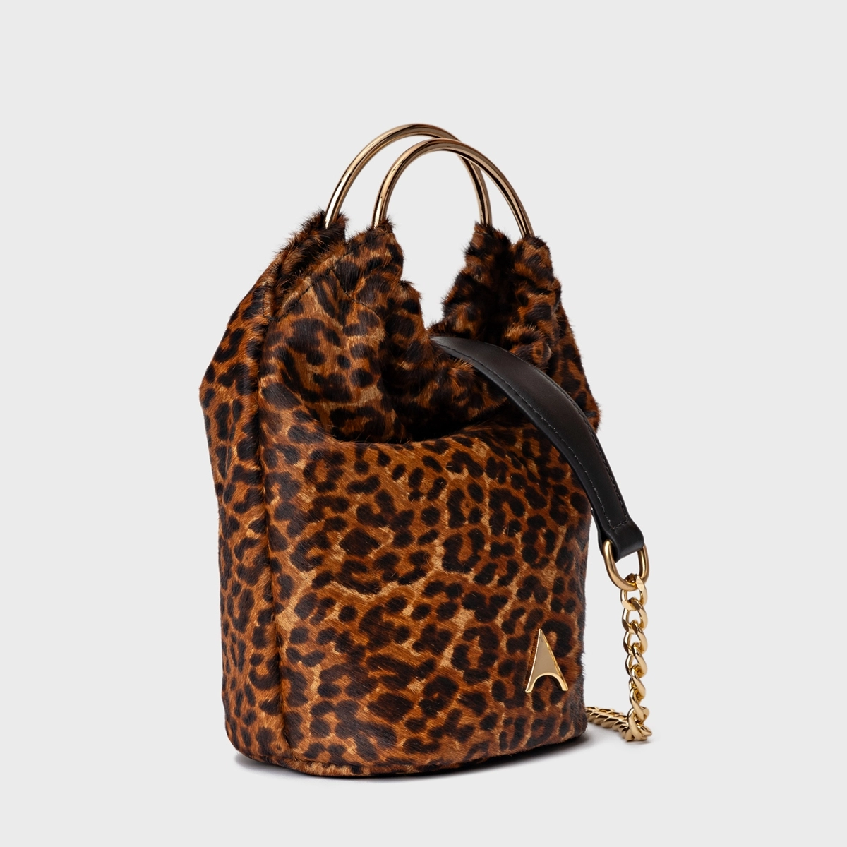 Bolsa Bucket Lizzie Pequena Pelo Animal Print Honey