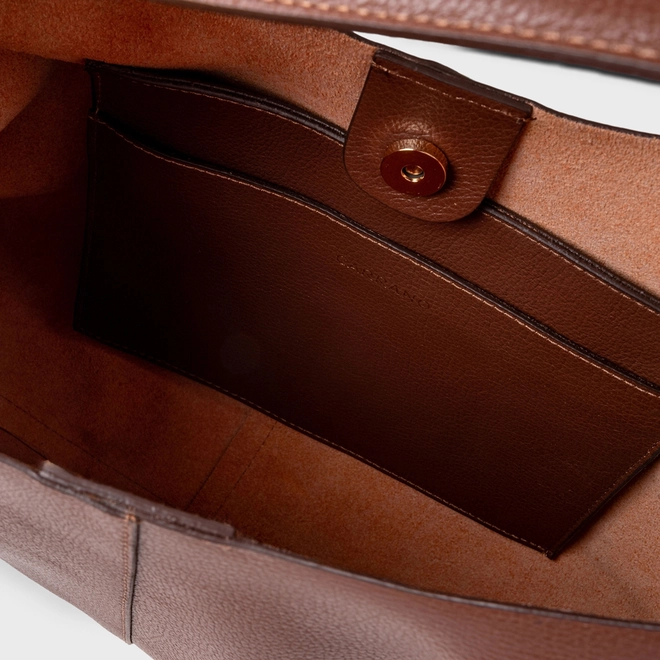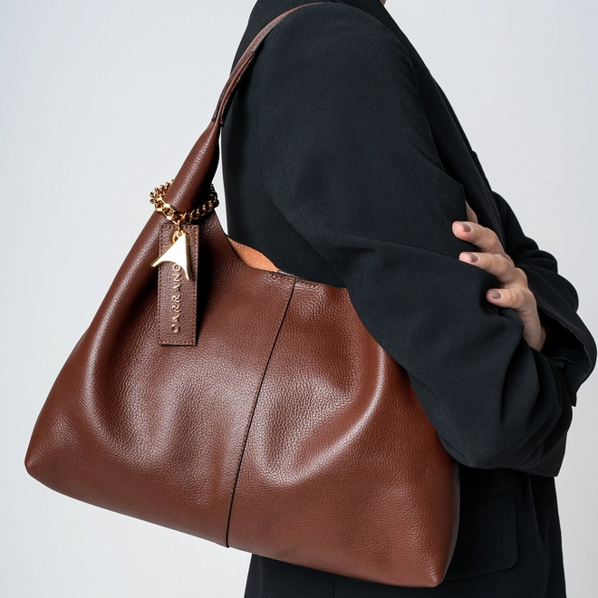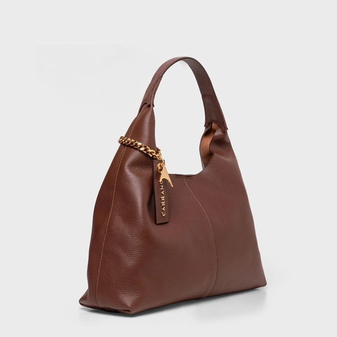 Bolsa Hobo Kendall Chain Grande Couro Marrom Brunette
