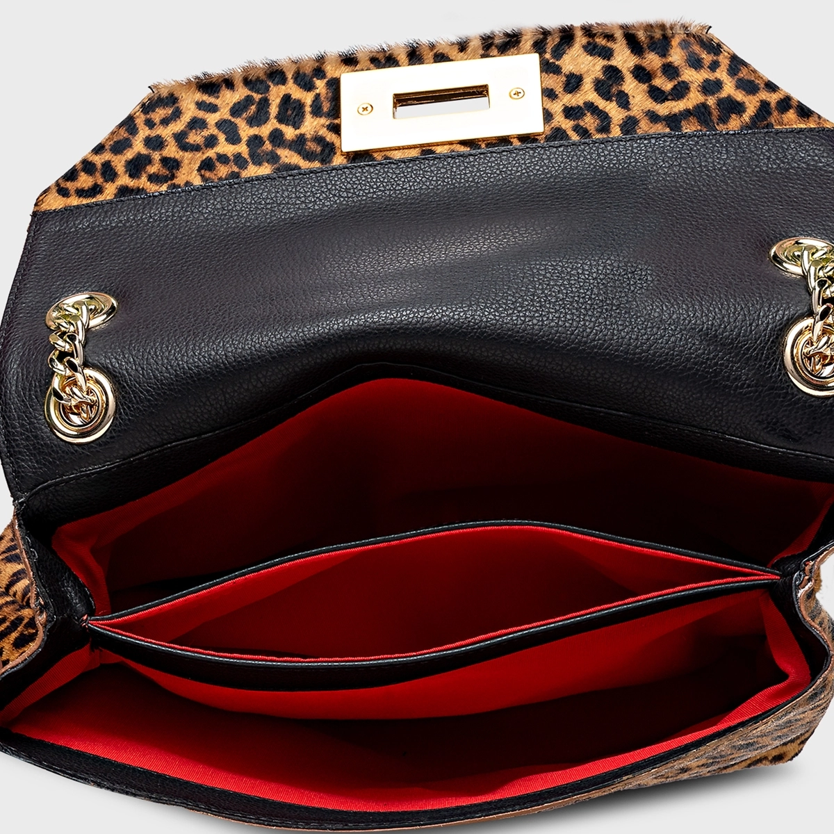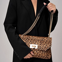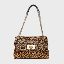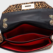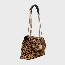 Bolsa shoulder em pelo animal print. Shape retangular, fechamento em imã, amplo espaço interno, alça dupla em corrente e ombreira de couro confortável. Fechamento com o ícone da Carrano em metal.