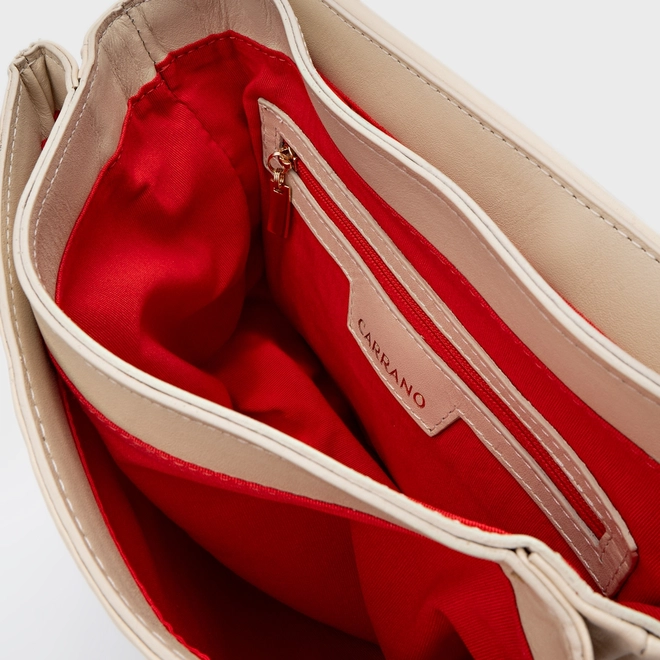 Bolsa Tiracolo de couro com o seu shape no formato quadrado. O modelo possui fechamento em ímã, três divisórias internas para facilitar a organização e alça lateral com corrente ajustável, que pode ser usada na transversal ou no ombro. Se destaca por seu fechamento com o ícone da Carrano em metal dourado. FEITO EM COURO LEGÍTIMO.