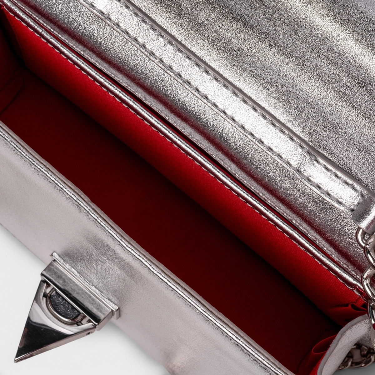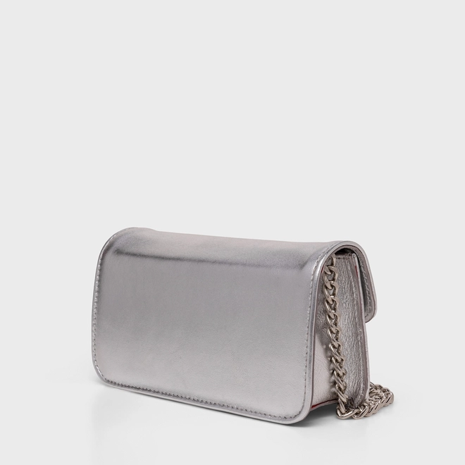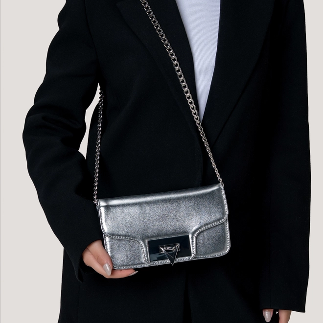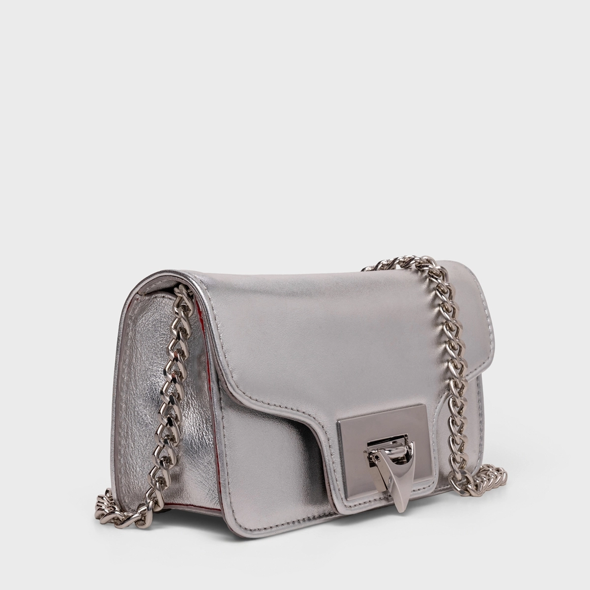 Bolsa Tiracolo Fiorella Pequena Couro Metalizado Prata