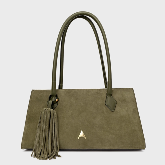Bolsa Tote Allora Grande Couro Suede Verde Army Green
