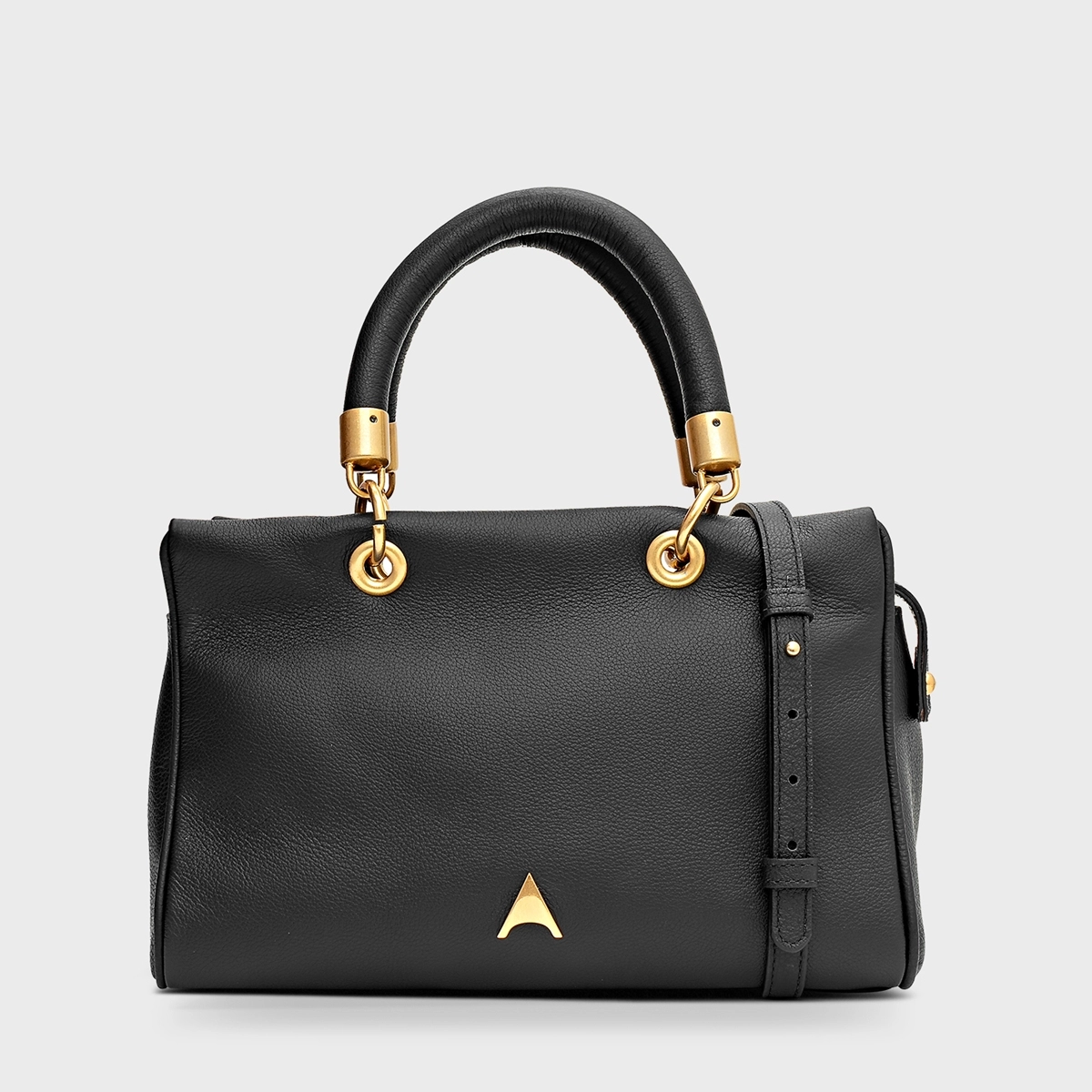Bolsa tote de couro com formato retangular. Apresenta alça de mão com detalhe de ilhós e argolas, além de uma alça lateral ajustável. Conta com fechamento em zíper e ícone metálico da Carrano.