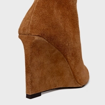 Bota Anabela Cano Alto Couro Suede Marrom Saddle