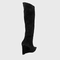 Bota Anabela Cano Alto Couro Suede Preto