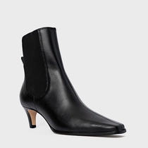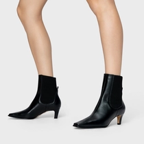 Bota Basic Elástico Salto Fino Couro Preto