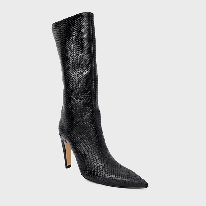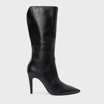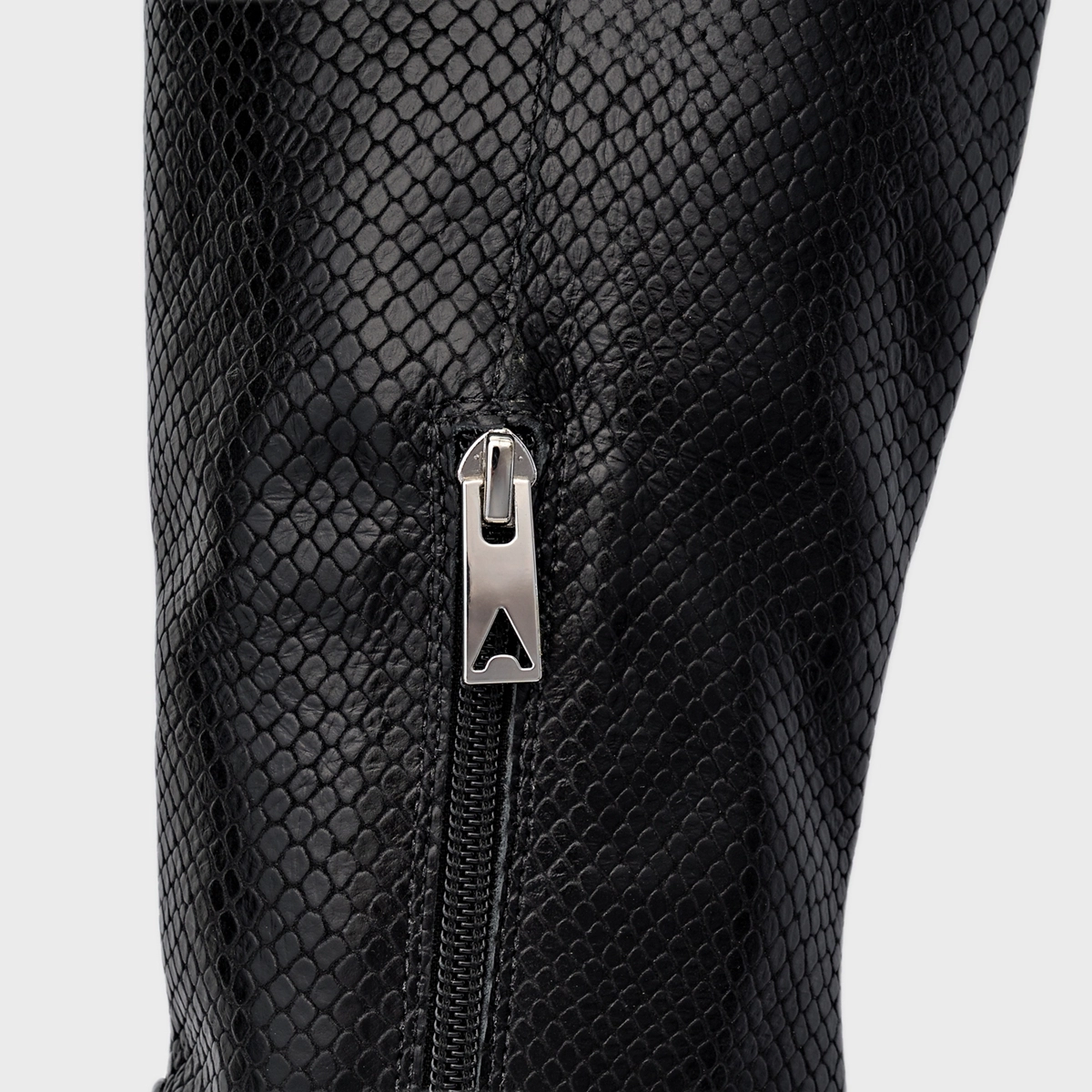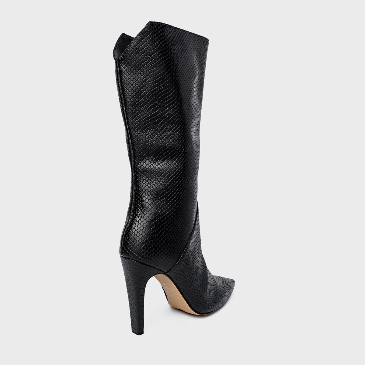 Bota Bico Alongado Cano Alto Couro Snake Preto
