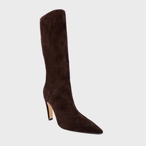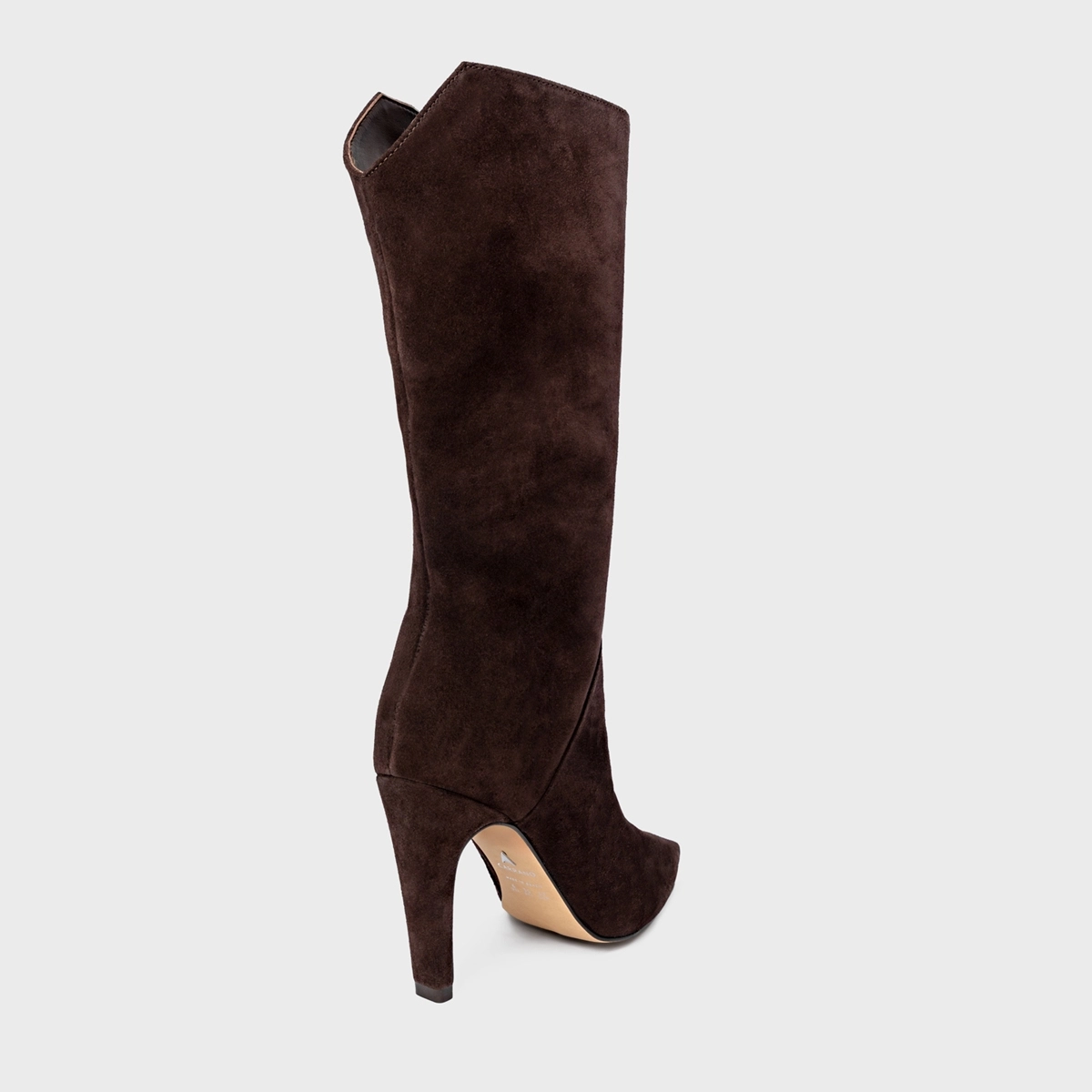 Bota Bico Alongado Cano Alto Couro Suede Marrom Ganache