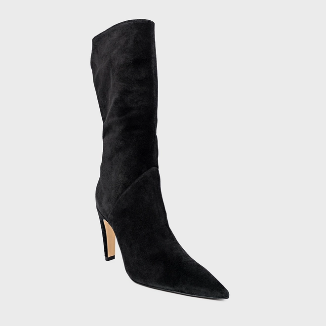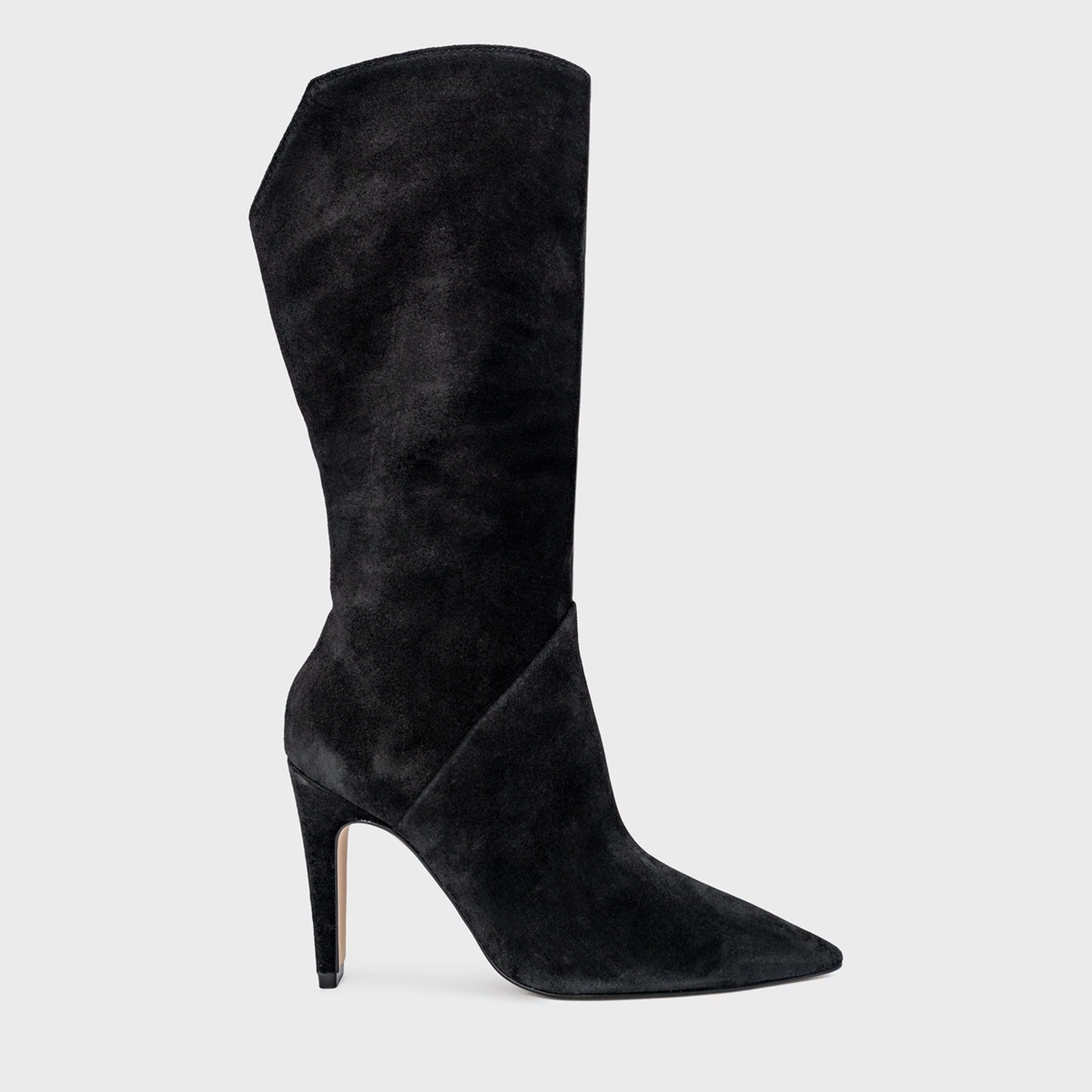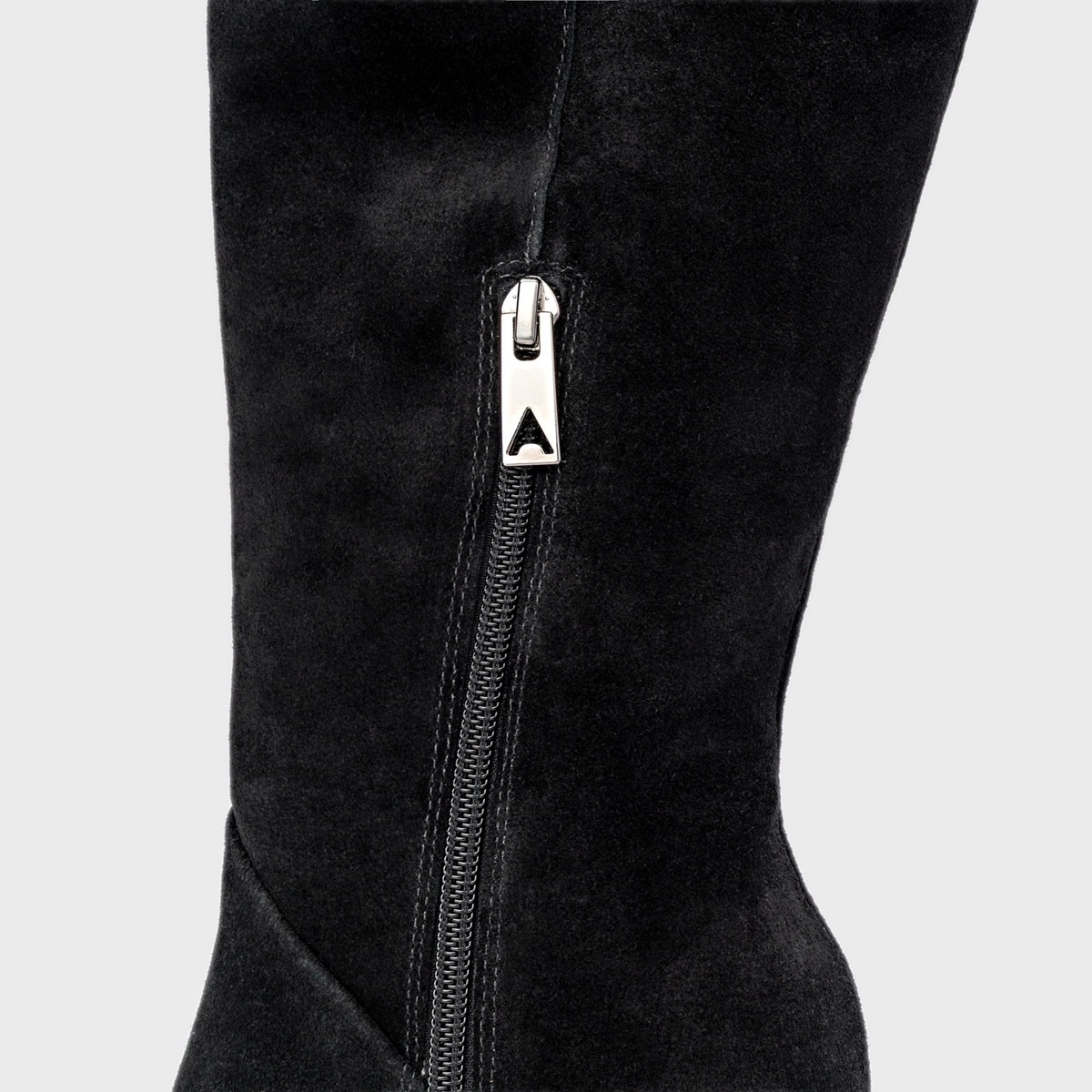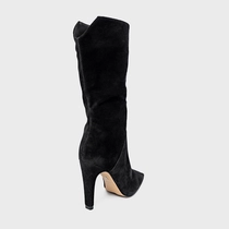 Bota Bico Alongado Cano Alto Couro Suede Preto