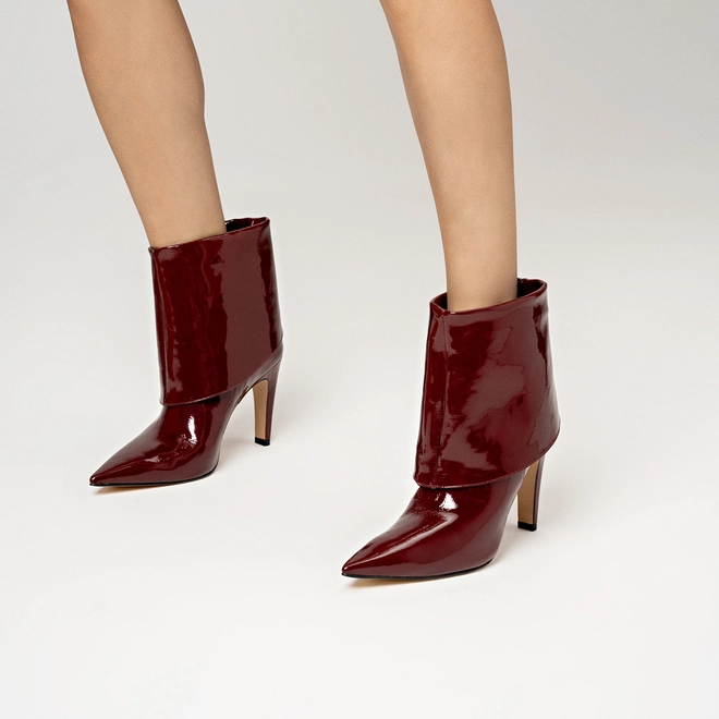 Bota Capa Salto Fino Couro Verniz Vinho Mahogany