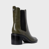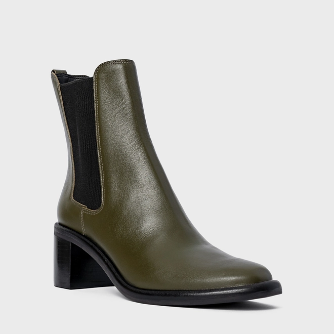 Bota Chelsea Basic Salto Bloco Couro Verde Herb