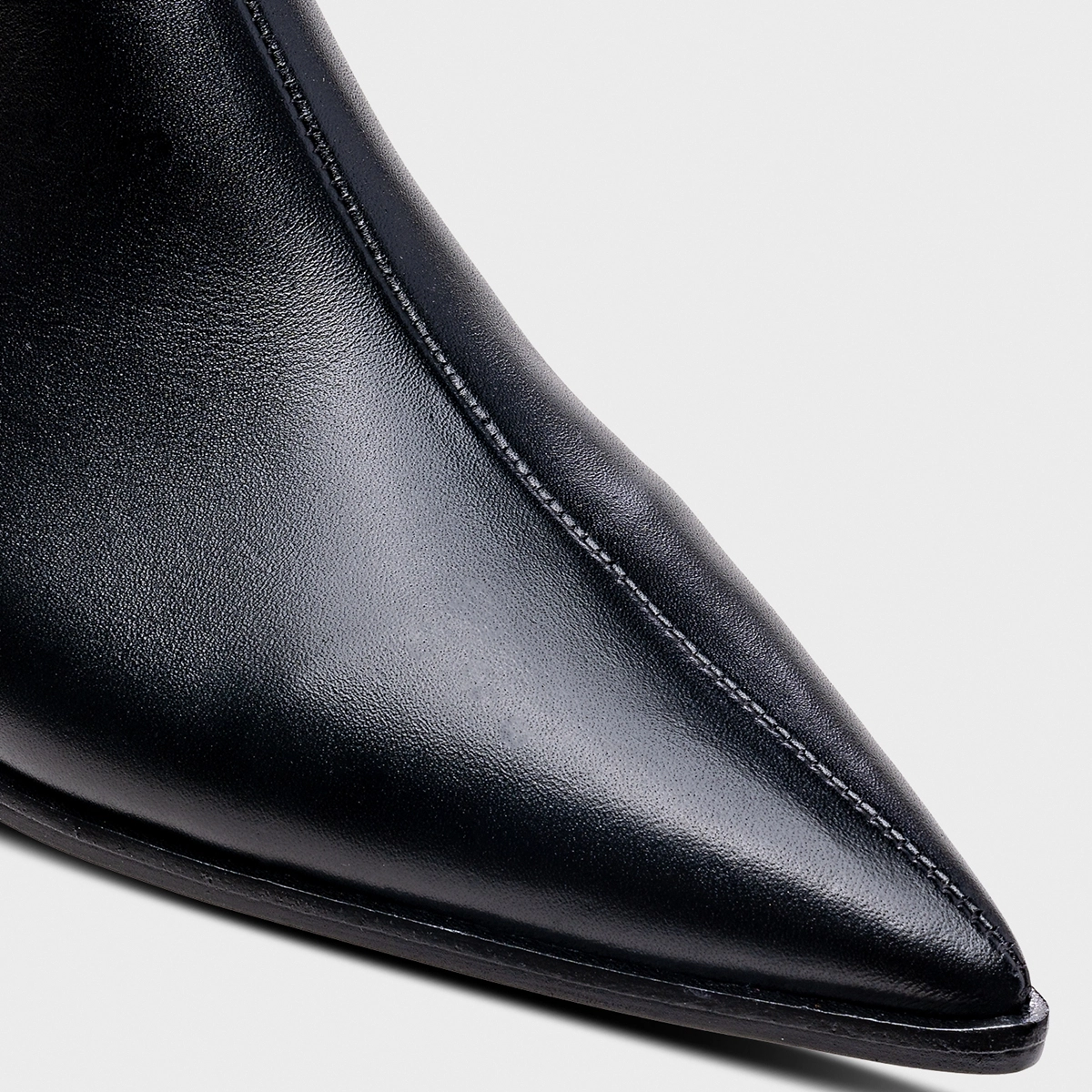 Bota Classic Bico Fino Salto Bloco Couro Preto