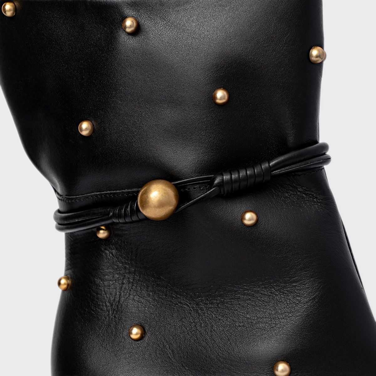Por que apostar? Suas esferas trazem um toque futurista e diferenciado, tornando essa bota um verdadeiro statement no look. Como usar? Combine com vestidos acetinados ou slip dress para destacar a bota em meio a peças fluidas e delicadas. Outra proposta interessante é apostar em uma camisa combinada com saia de vinil e meia-calça super fininha, criando um contraste sofisticado e moderno.