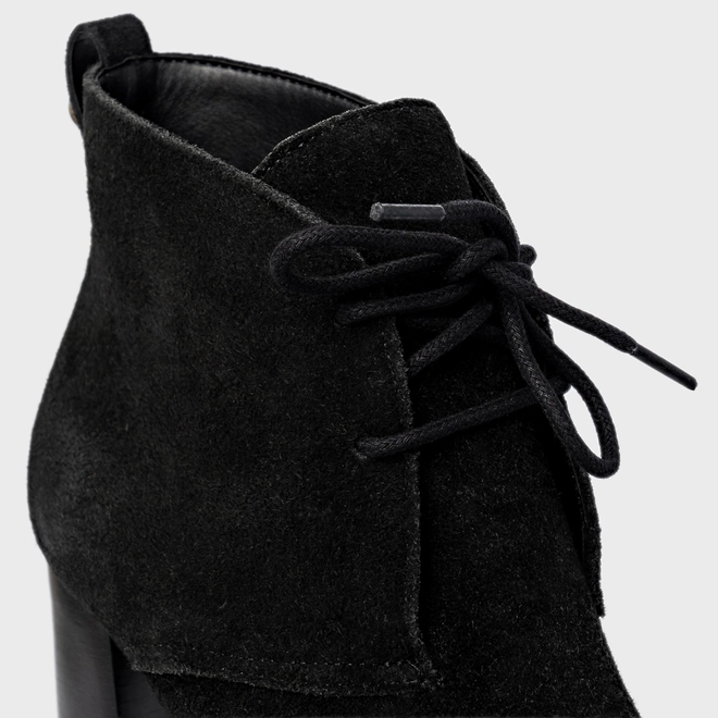 Bota Edgy Amarração Salto Bloco Couro Suede Preto