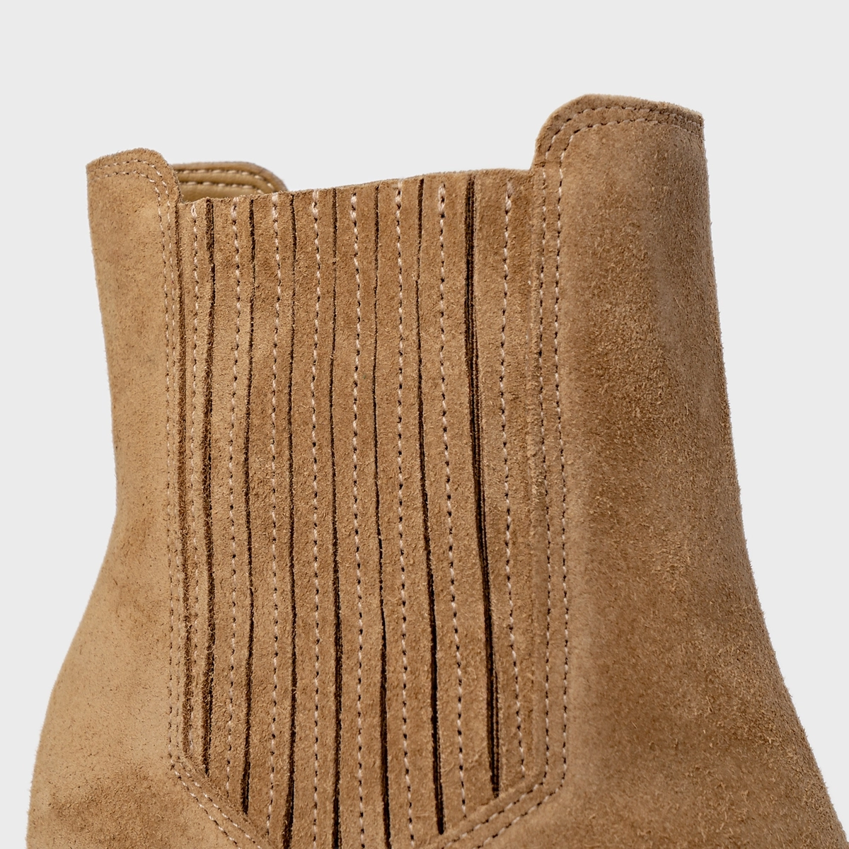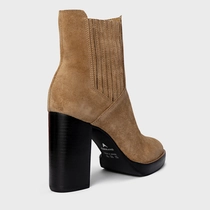 Bota Edgy Salto Bloco Couro Suede Bege Almond