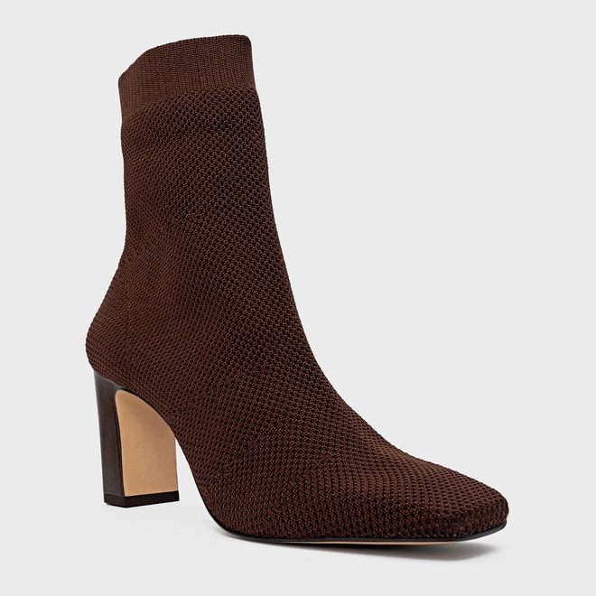 Bota Essential Salto Bloco Knit Marrom Dark Brown