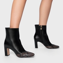 Bota Essential Snake Salto Bloco Couro Preto