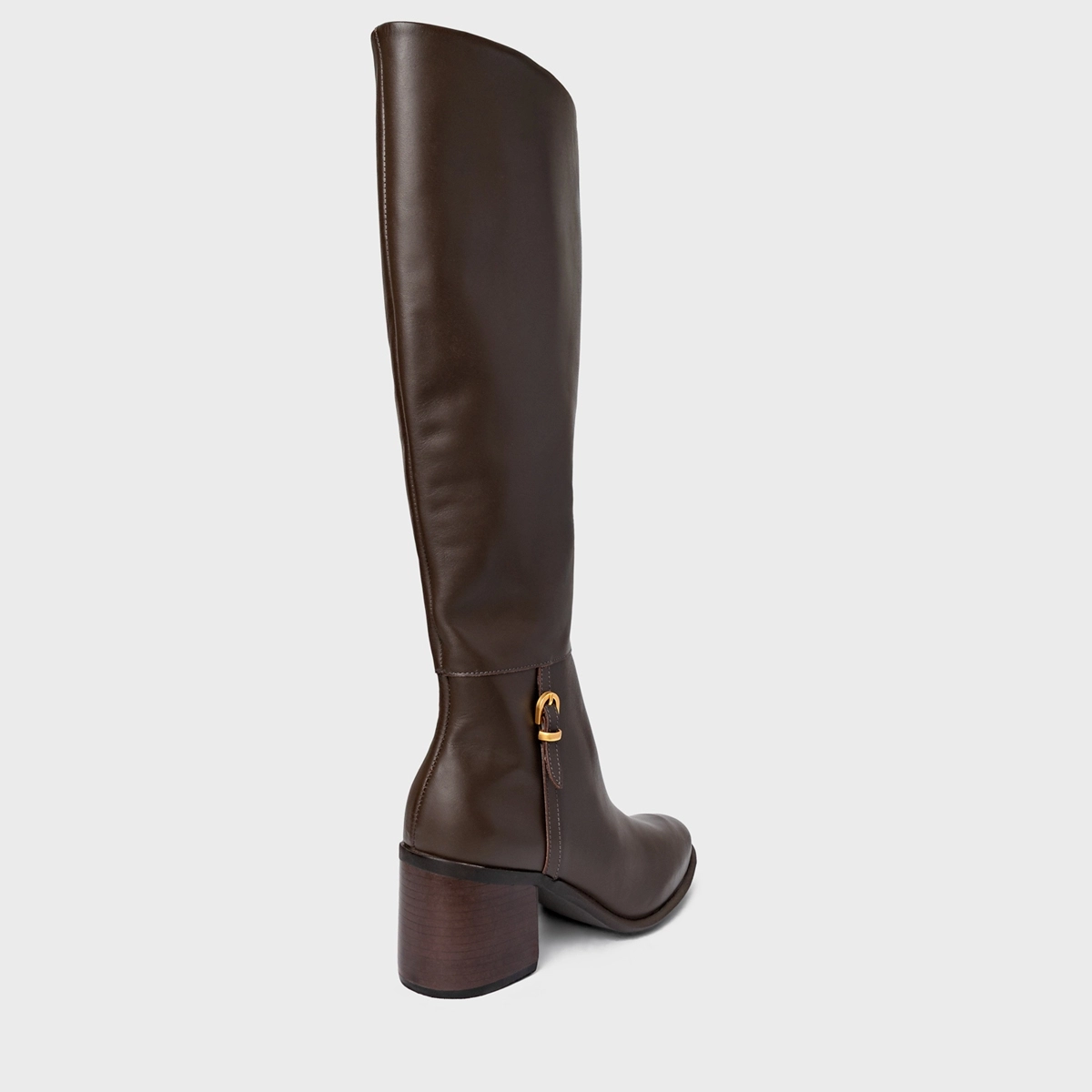 Bota Eternal Cano Alto Salto Bloco Couro Marrom Dark Brown