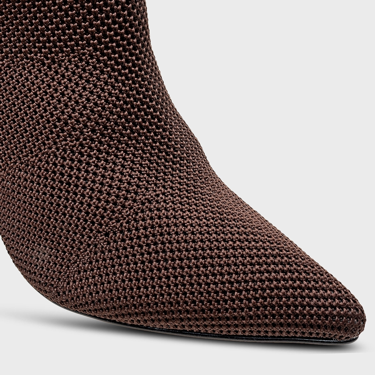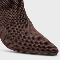Bota Meia Salto Bloco Alto Knit Marrom Dark Brown