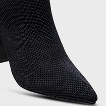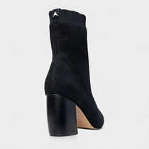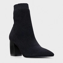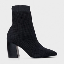 Bota Meia Salto Bloco Alto Knit Preto