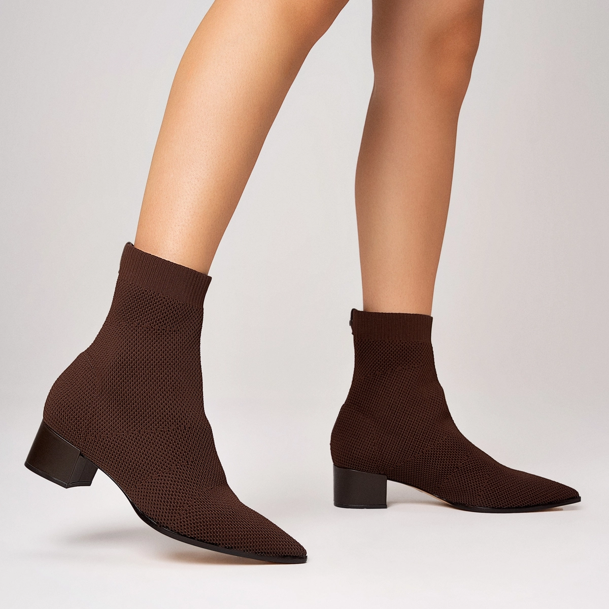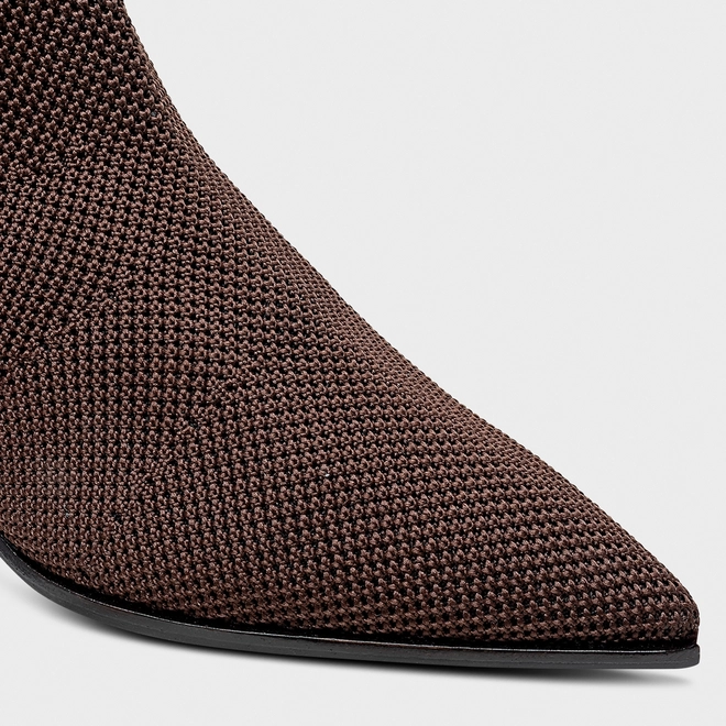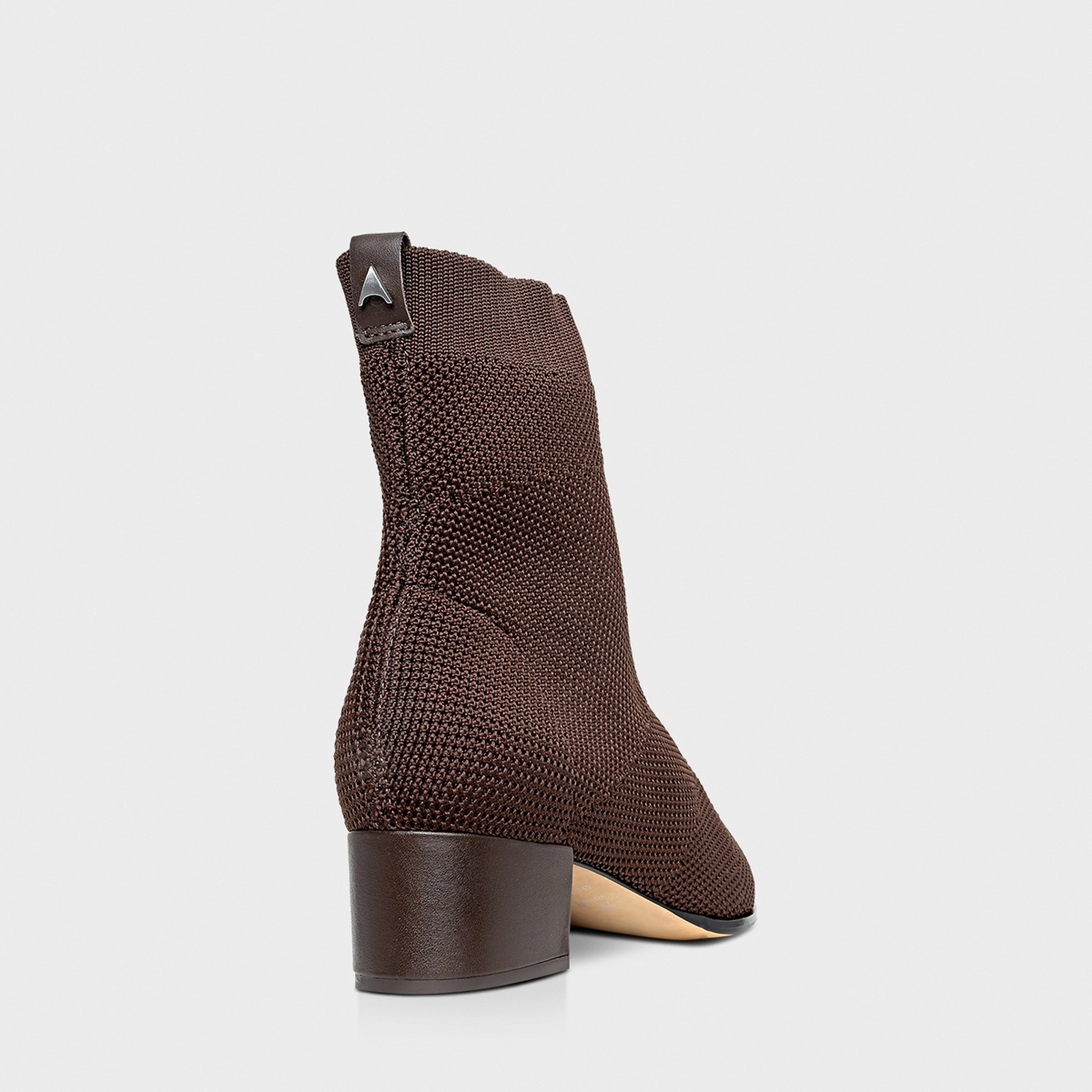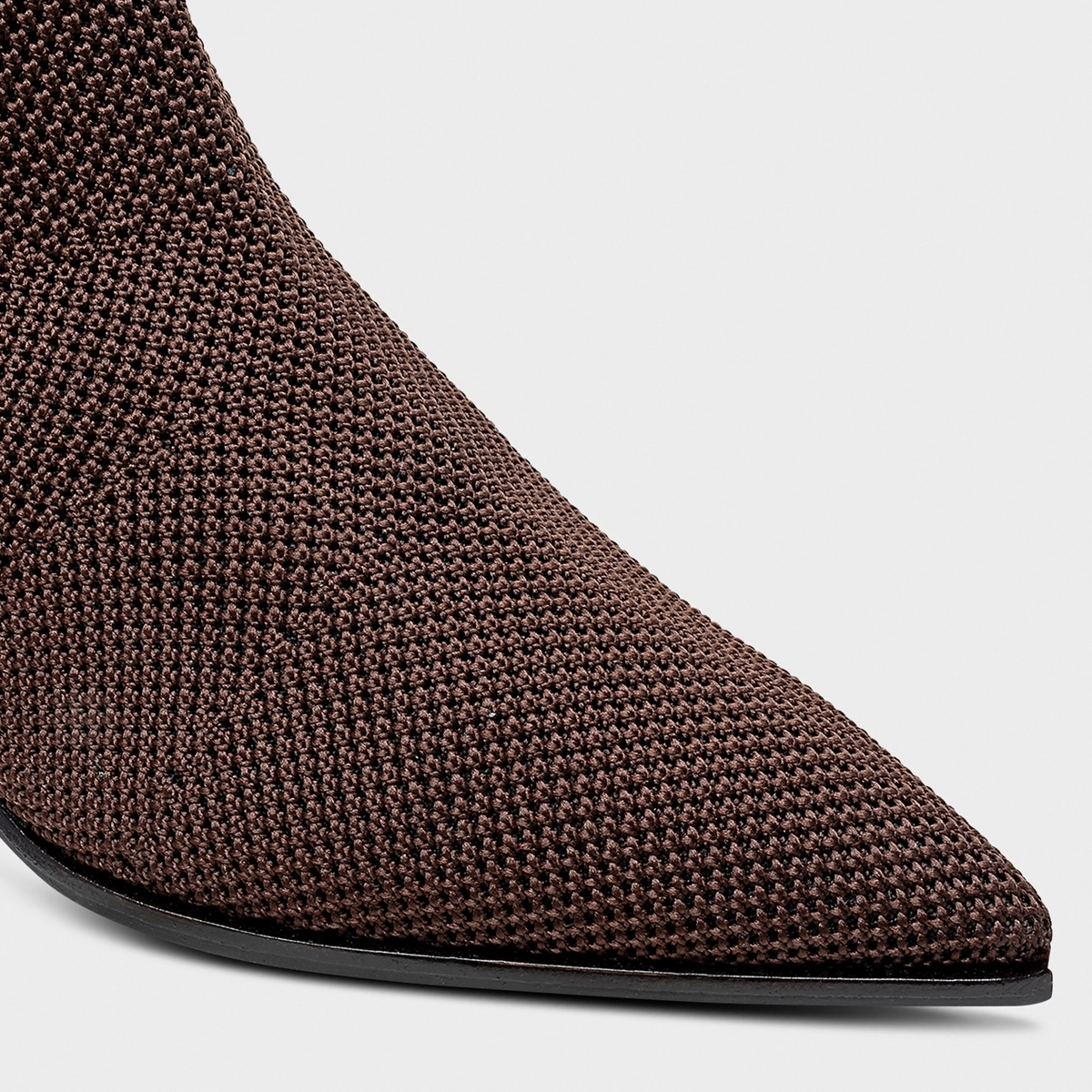 Bota Meia Salto Bloco Knit Marrom Dark Brown