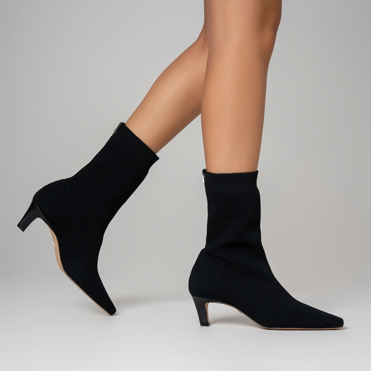 Bota Meia Salto Fino Knit Preto