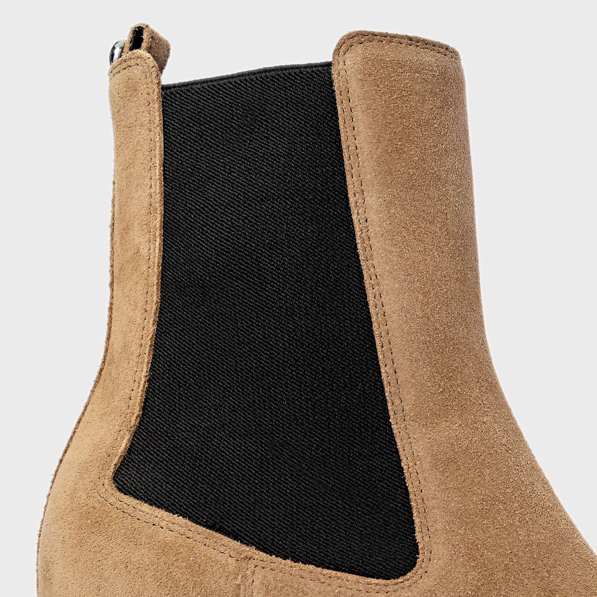 Bota Neutral Salto Bloco Couro Suede Bege Almond