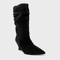 Bota Slouchy Anabela Slim Couro Suede Preto
