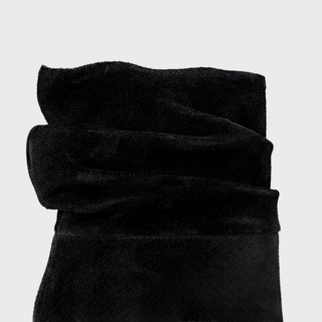 Por que apostar? Essa é a famosa bota slouchy, uma peça que exala personalidade e traz um ar fashionista imediato para qualquer produção. O cano franzido adiciona textura e volume ao visual! Como usar? Crie um mix de texturas com saia midi fluida e tricô leve. Para um mood contemporâneo, vá de jeans reto de cintura alta e camisa oversized.