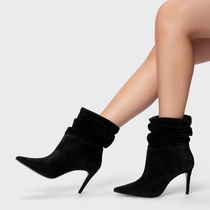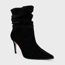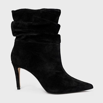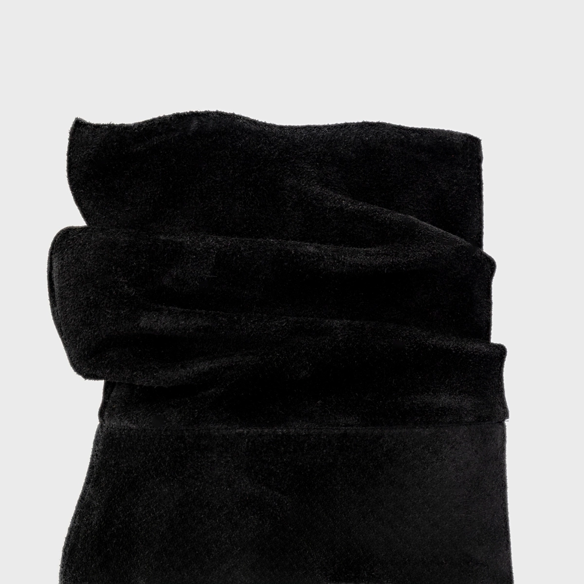 Bota em couro suede de cano baixo com efeito drapeado slouchy, bico e salto fino.