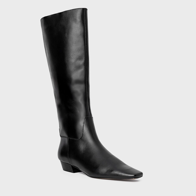 Por que apostar? Essa bota é ideal para quem busca se destacar com elegância. Apesar da estética mais clean, o cano alto imprime identidade e presença, alonga a silhueta e transforma a bota em protagonista do look sem excessos. Como usar? Aposte em trench coat, meia-calça transparente e mini saia para criar um visual equilibrado entre sofisticação e atitude. Finalize com uma t-shirt para trazer leveza e um ar despretensioso à produção, deixando a bota assumir o destaque com naturalidade.