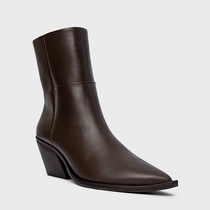 Bota Western Basic Salto Bloco Couro Marrom Dark Brown