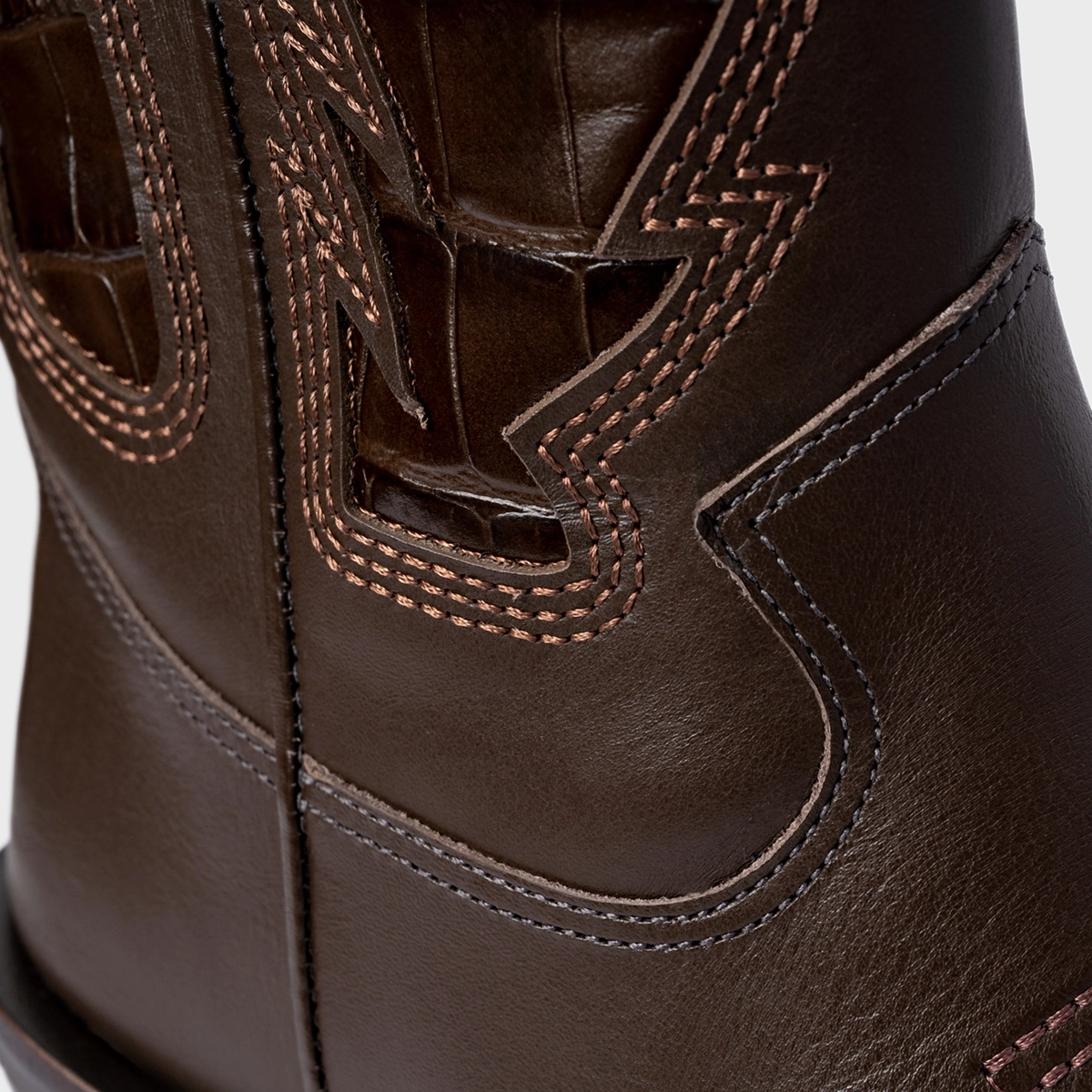 Bota Western Bordados Salto Bloco Couro Marrom Dark Brown