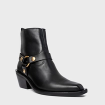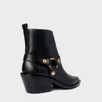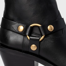 Bota Western Ring Salto Bloco Couro Preto