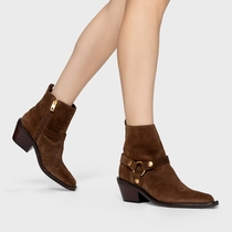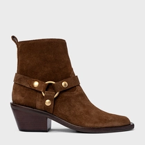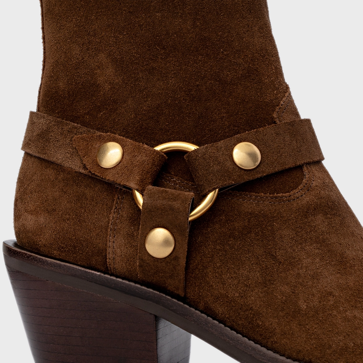 Bota Western Ring Salto Bloco Couro Suede Marrom Brownie