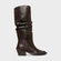 Bota western de couro. Com bico fino levemente quadrado na ponta. O cano longo com efeito slouchy e salto bloco. Com palmilha da cor do modelo, possui também o ícone e a inscrição do nome da marca.