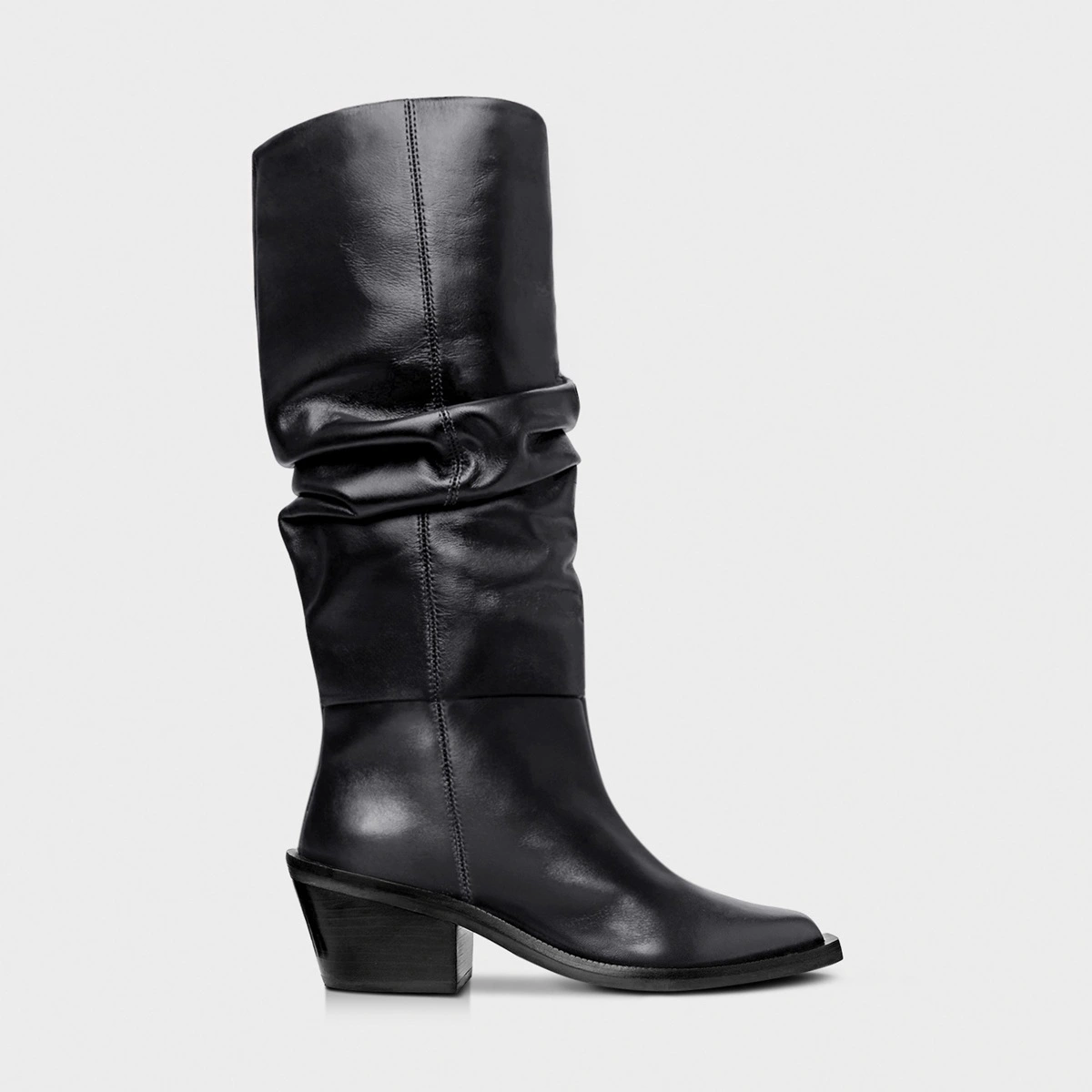 Bota Western Slouchy Salto Bloco Couro Preto