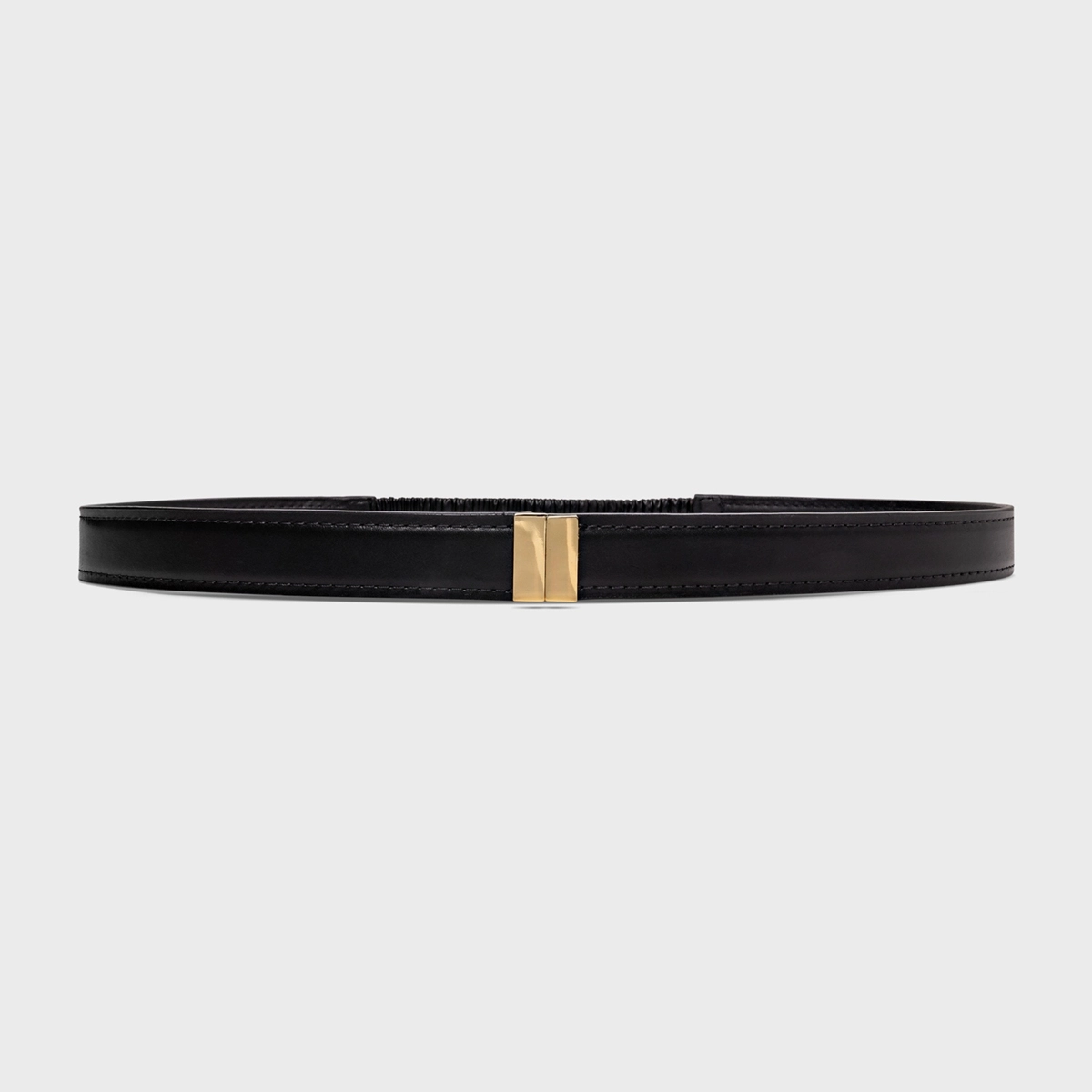 Cinto de couro com design robusto e fivela retangular. O destaque fica por conta do fecho com encaixe frontal. Conta com elástico na parte de trás para melhor ajuste ao corpo.