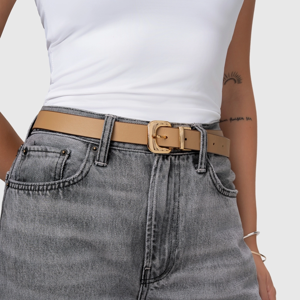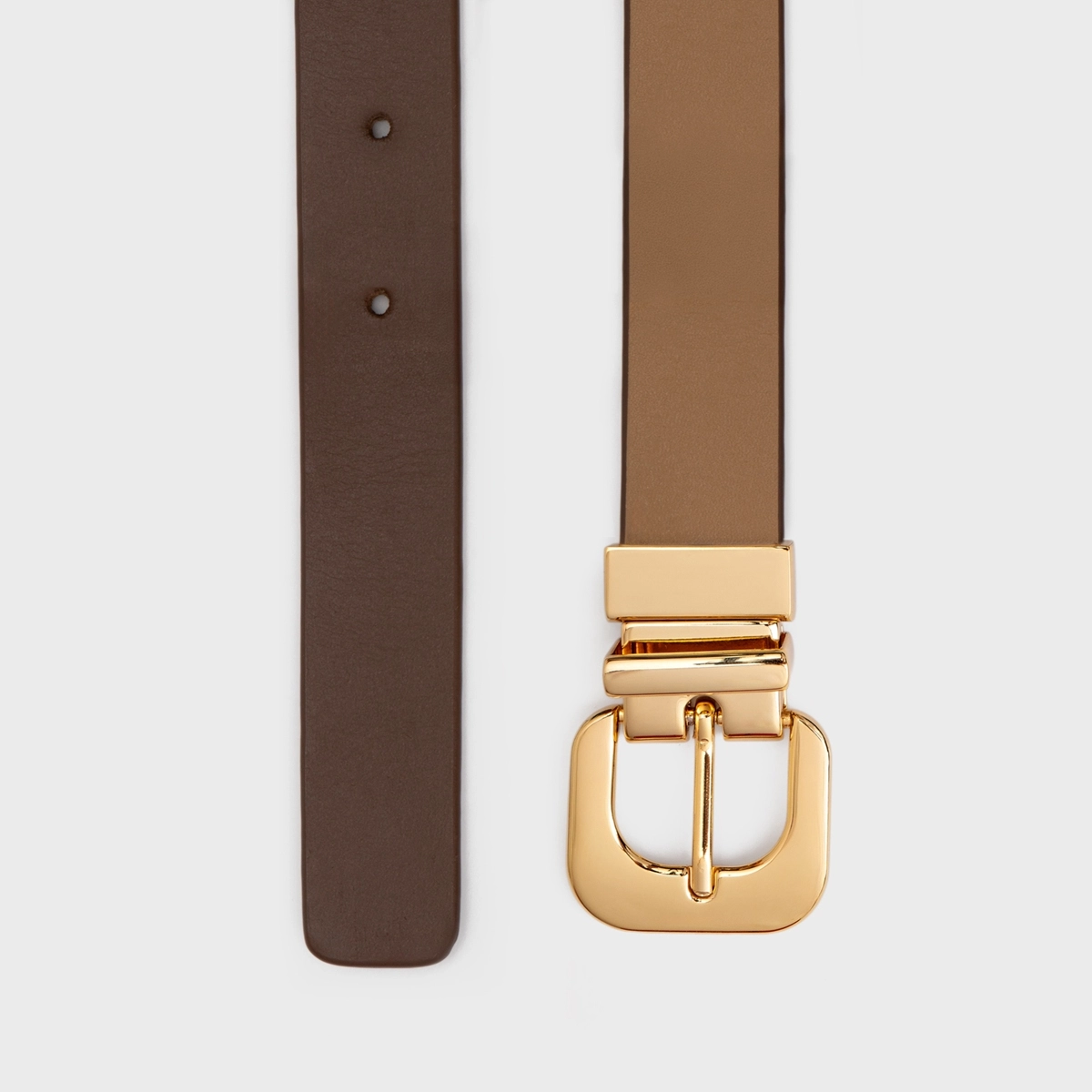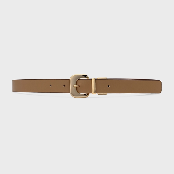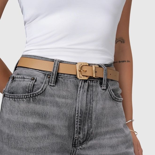 Por que apostar? O cinto de espessura média se destaca pela presença elegante e acabamento sofisticado. A fivela metálica dourada em formato orgânico adiciona personalidade ao visual, criando um ponto focal refinado e tem o plus de ser dupla face e ter o poder de usar com duas cores lindas em um só. Como usar? Use para marcar a cintura sobre blazers, vestidos de alfaiataria ou casacos estruturados. Também funciona muito bem em produções monocromáticas, trazendo contraste e valorizando a silhueta de forma elegante e contemporânea.