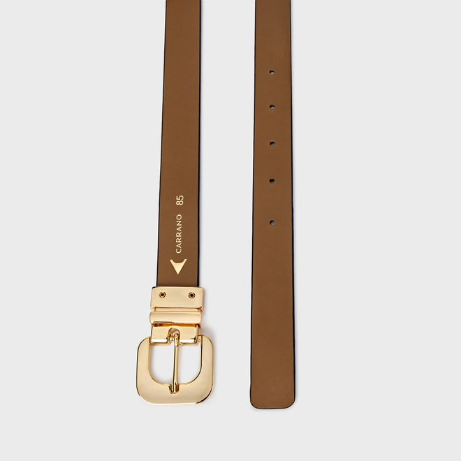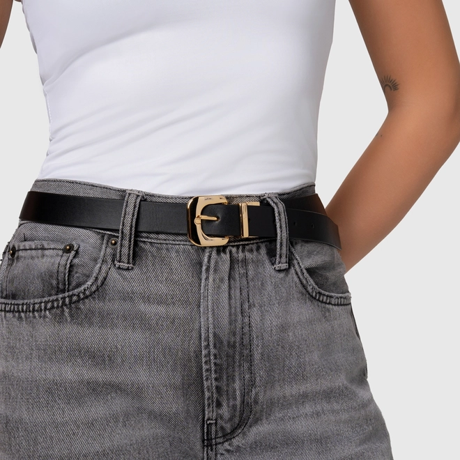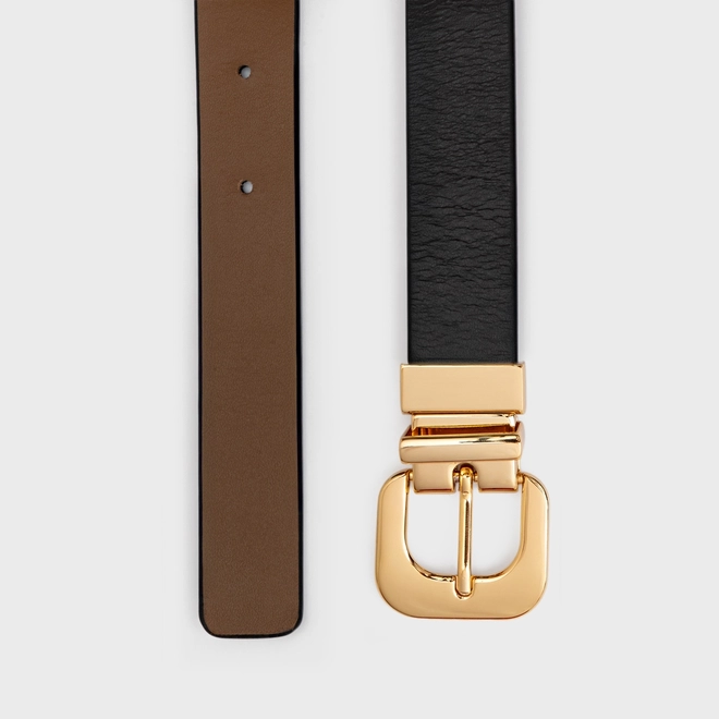Por que apostar? O cinto de espessura média se destaca pela presença elegante e acabamento sofisticado. A fivela metálica dourada em formato orgânico adiciona personalidade ao visual, criando um ponto focal refinado e tem o plus de ser dupla face e ter o poder de usar com duas cores lindas em um só. Como usar? Use para marcar a cintura sobre blazers, vestidos de alfaiataria ou casacos estruturados. Também funciona muito bem em produções monocromáticas, trazendo contraste e valorizando a silhueta de forma elegante e contemporânea.