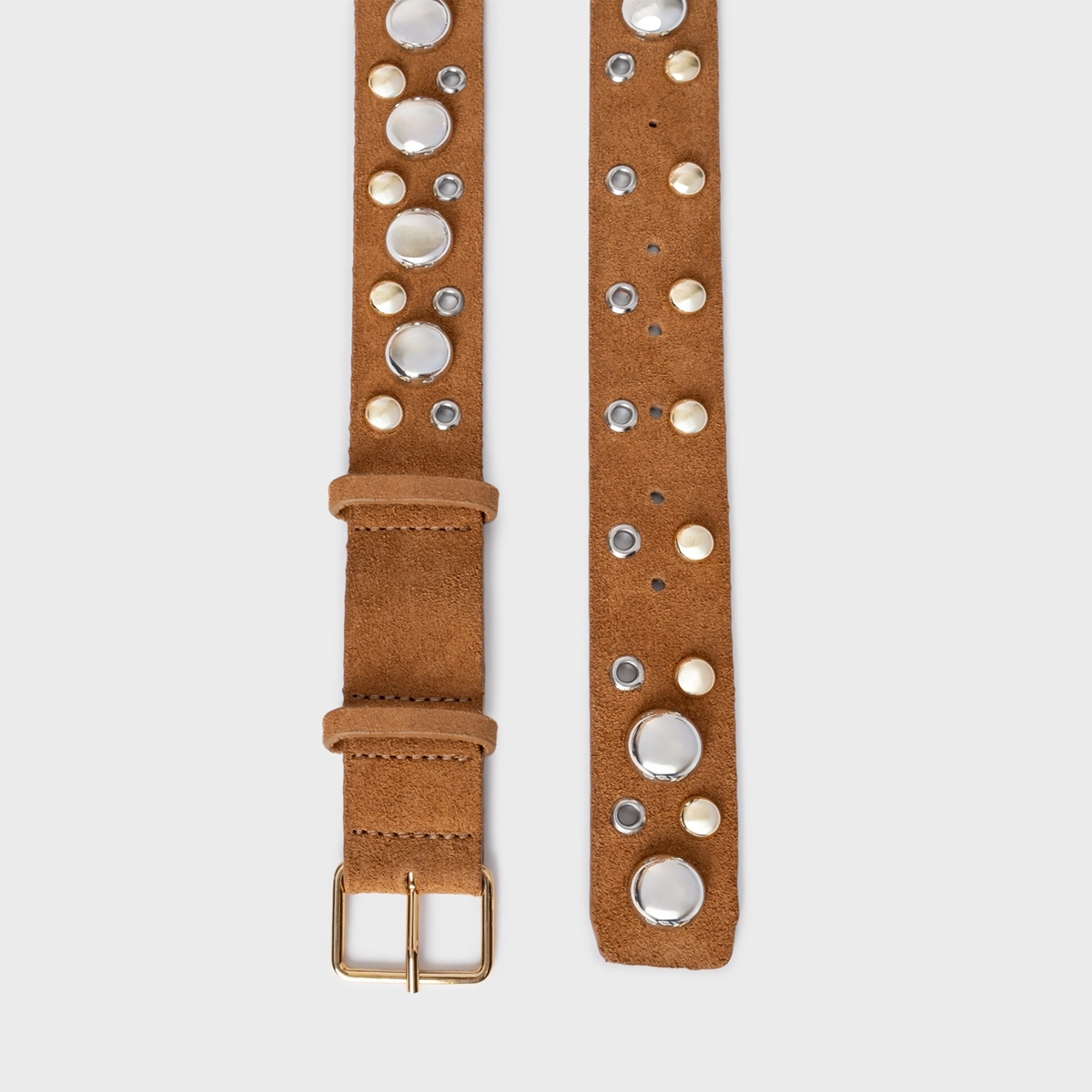Cinto Mixed Balls Médio Couro Suede Marrom Saddle