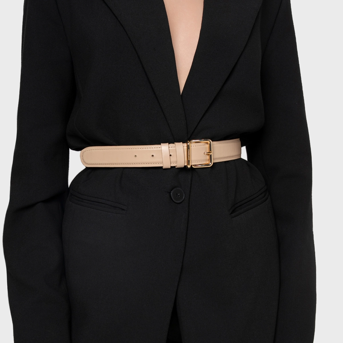 Cinto Regular Grosso Couro Bege Ginger