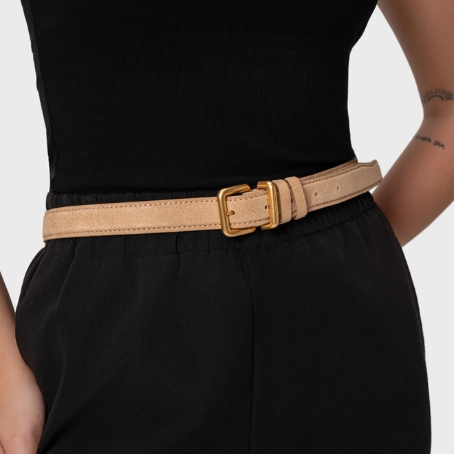 Cinto Regular Médio Couro Rustico Bege Toffee