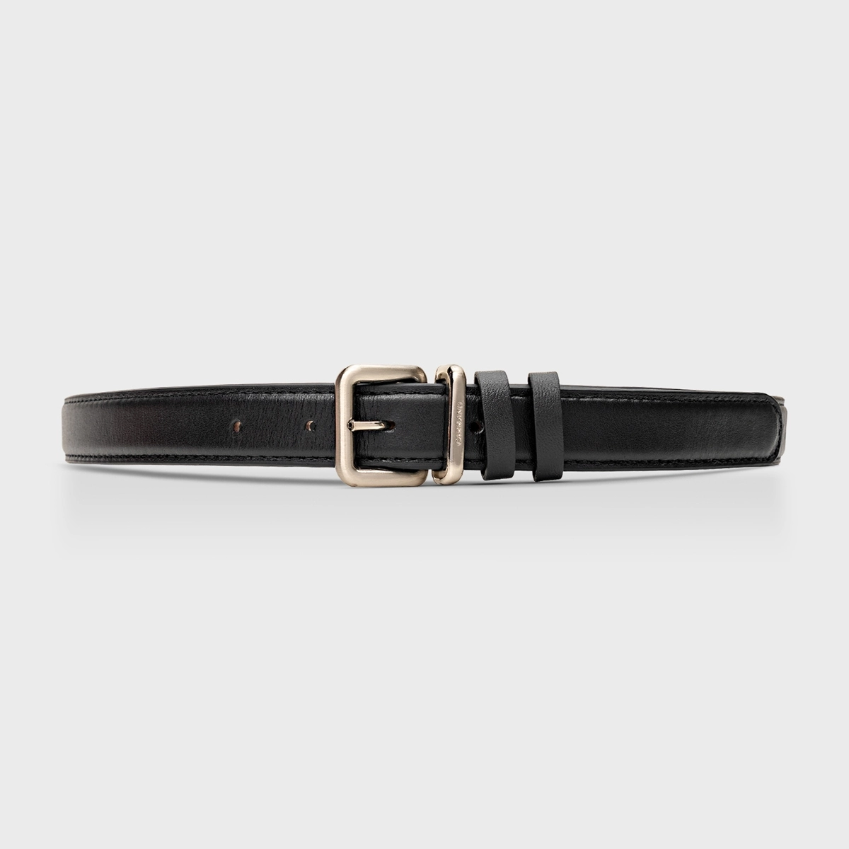 Cinto de couro com shape médio e passador duplo, trazendo um visual super elegante. Fivela marcante em metal, design mais oval e com enchimento. FEITO EM COURO LEGÍTIMO.