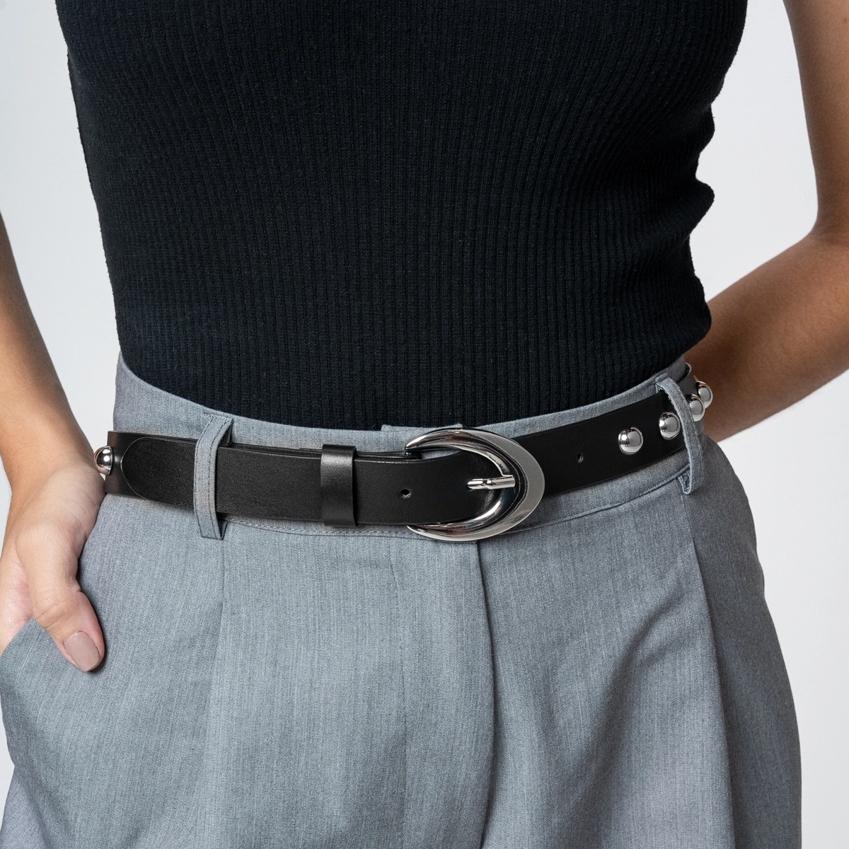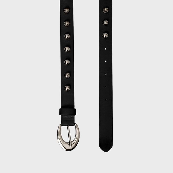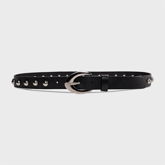 Cinto Studs Médio Prata Couro Preto