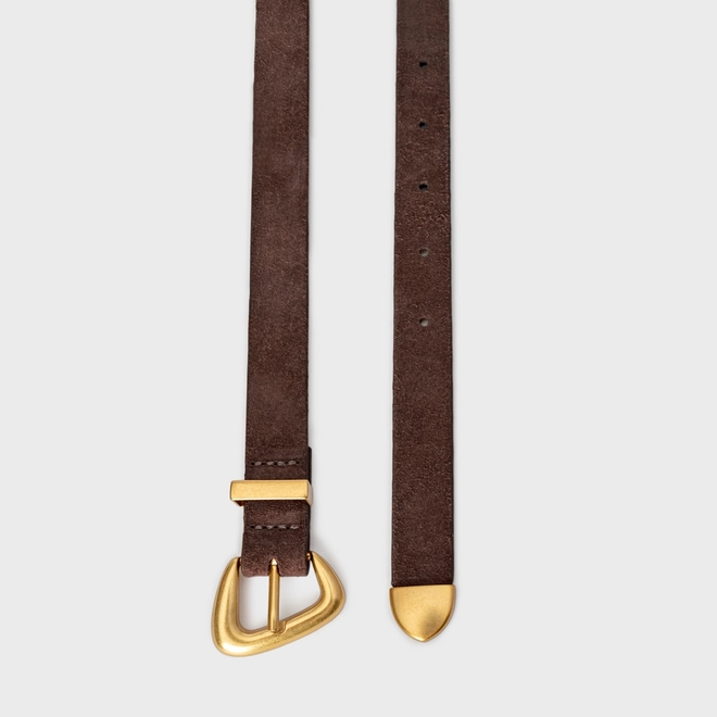 Cinto Western Buckle Fino Couro Suede Marrom Ganache