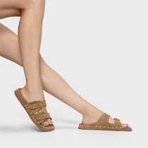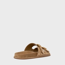Flat Papete Birken Statement Studs Couro Suede Bege Almond