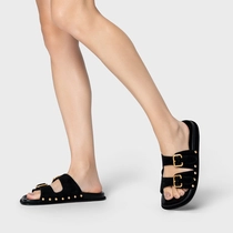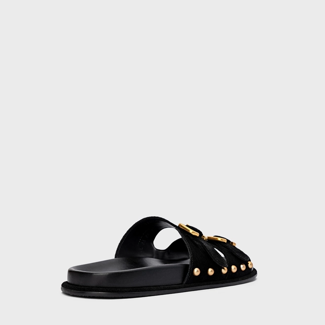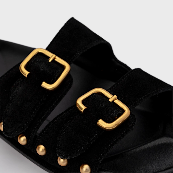Flat Papete Birken Statement Studs Couro Suede Preto