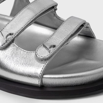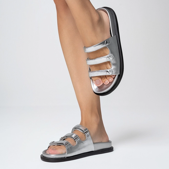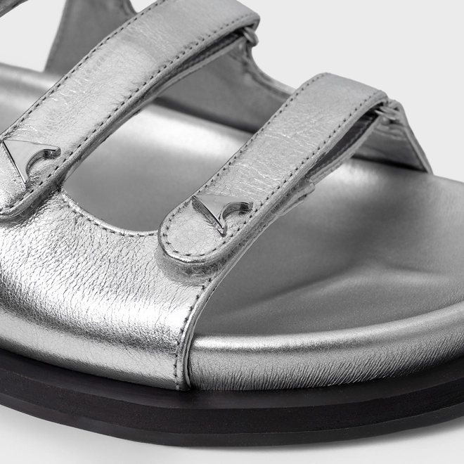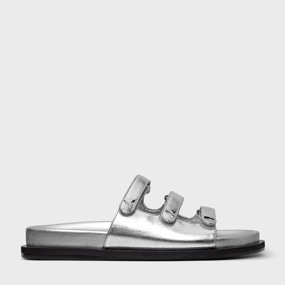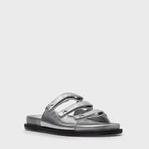 Flat Papete Triple Tiras Couro Metalizado Prata