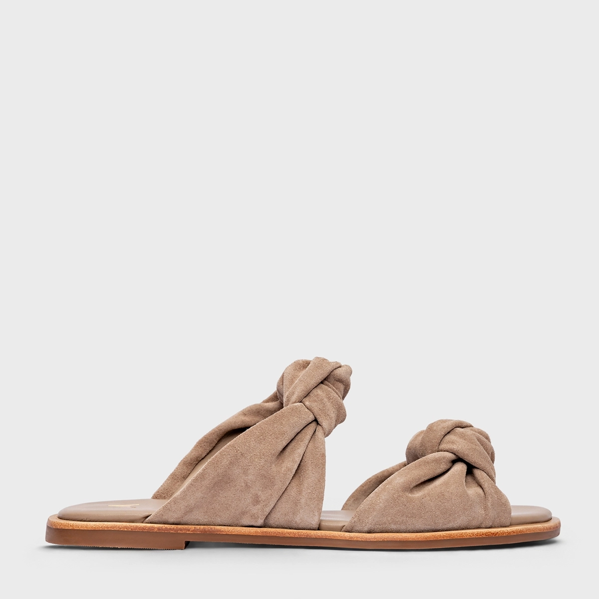Flat de couro, bico arredondado e salto rasteiro. Possui duas tiras puffy com efeito de nó, uma sobre os dedos e outra no peito do pé. Combina com qualquer ocasião unindo design e conforto.